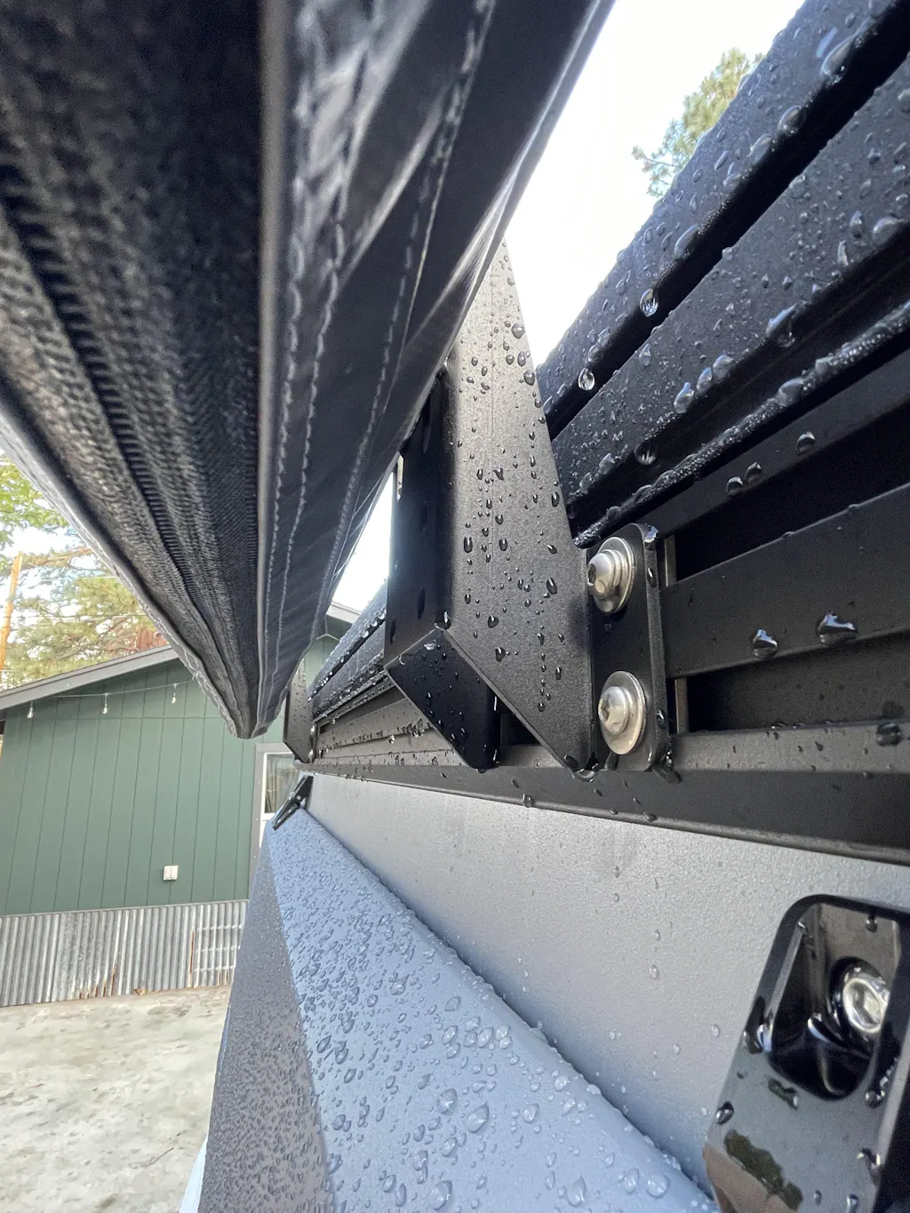The bracket is exactly what I needed. It gives a bit of a lift so that the awning clears the opened hatch with greater ease. It also pushes the awning just enough away from the topper framing. It’s well fabricated light, compact, efficient, with proper hole placement. I would note that the 2-sided long t-nuts seen on the SP’s website did not come with mine, rather single t-nuts were included. Outdated image for the product?