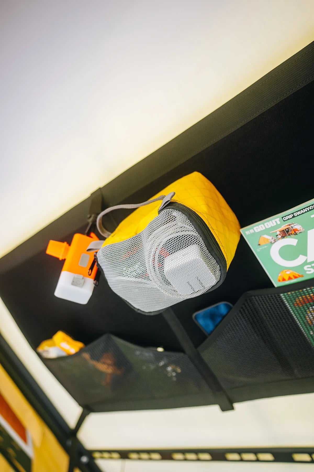 The huck pack gear loft ties into the huckpack storage behind my front seat. This allows me to take stuff up into the tent at night and not question where anything is. Awesome!