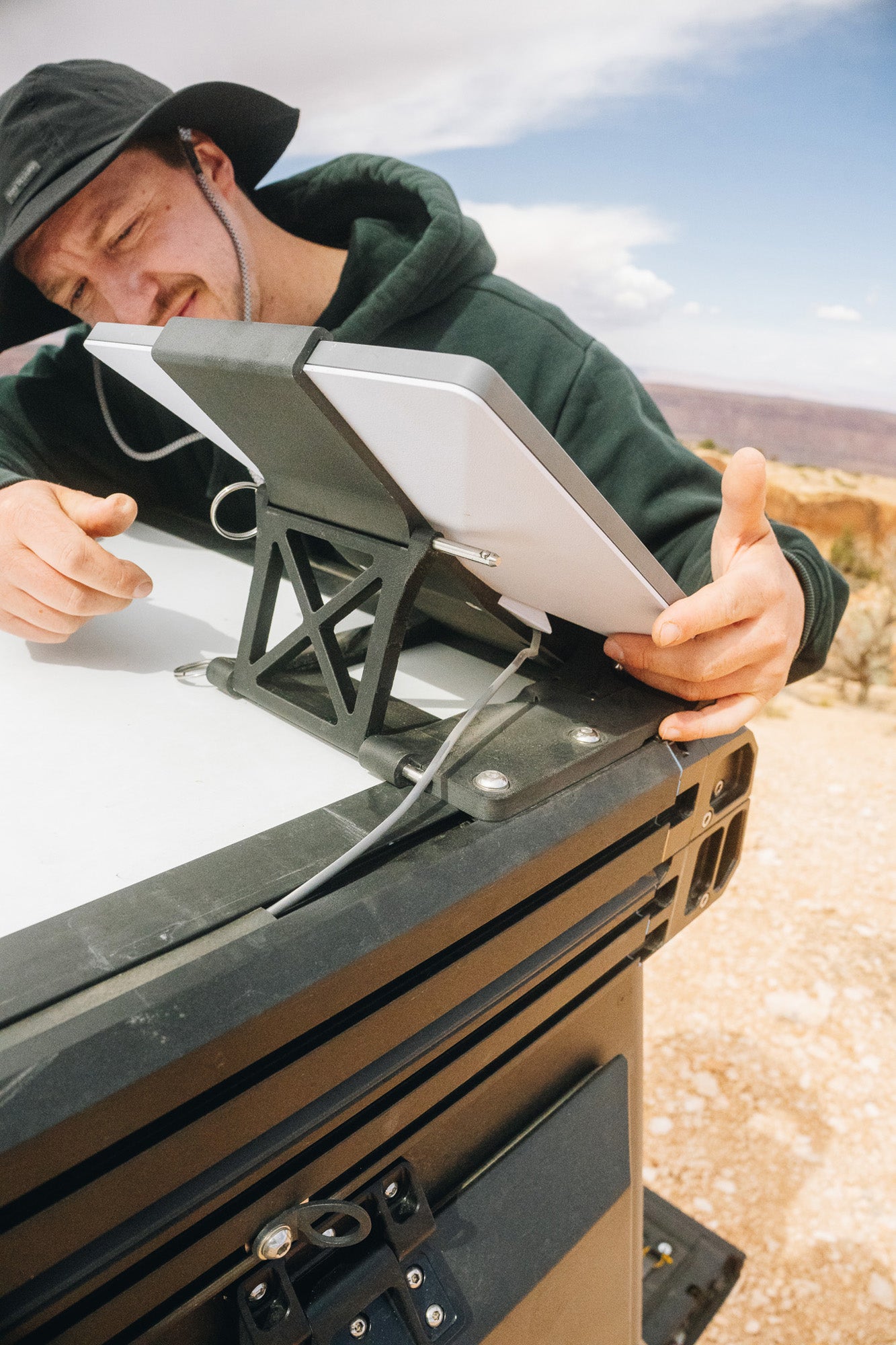 Stay connected with the "Always On" mount for the Starlink Mini and X1 Camper, by Iterra Designs (aka Keegan Builds). This dynamic mount keeps the elevation angle of the Starlink dish flat to the sky in two settings, maximizing your signal while you're at camp and on the road.